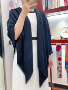 SQUARE SCARF 140 CM IN NAVY BLUE WOOL AND SILK 408662
