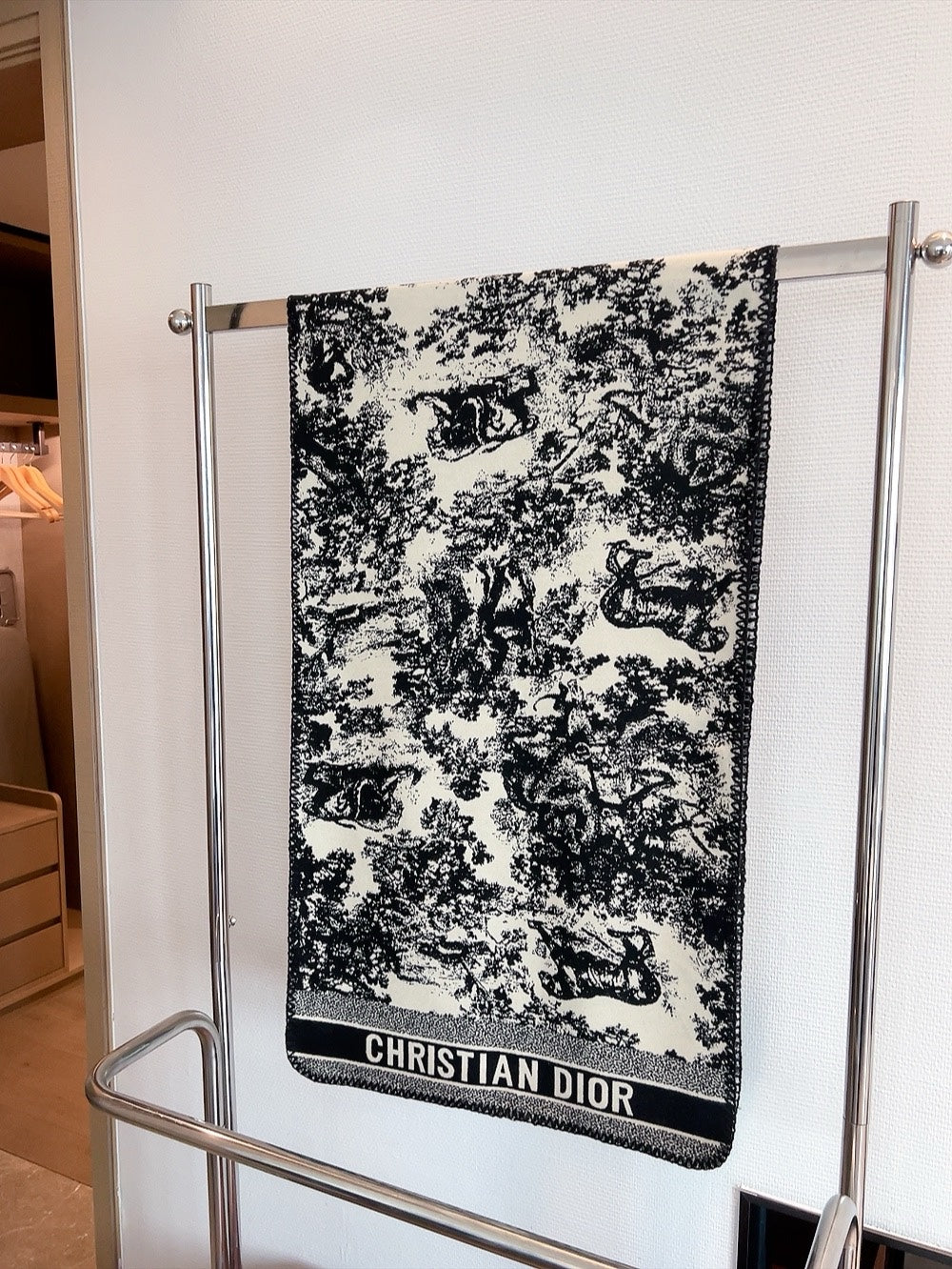 TRIANGLE EDGE SCARF 190 CM IN BLACK MIX WHITE WOOL AND CASHMERE 418535