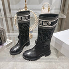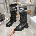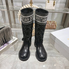 CD D-Major Boot Black Mix White Calfskin And Tweed Fabric
