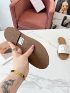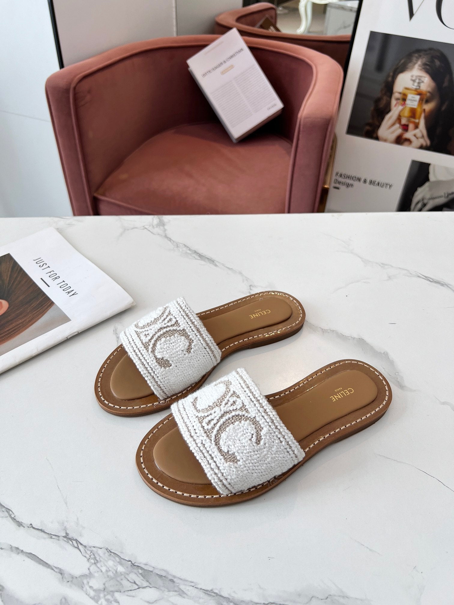 Celine 25C Slippers White Fabric with Calfskin 238157