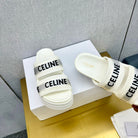 Celine Flatform Dad Sandal Mule White Fabric with Rubber 238141