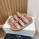 tippi slide sandal white brown canvas calfskin