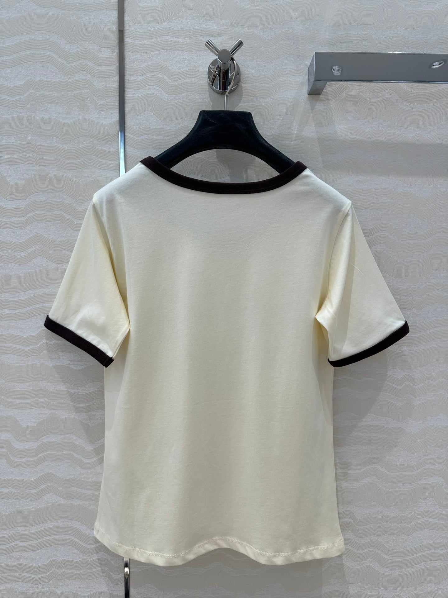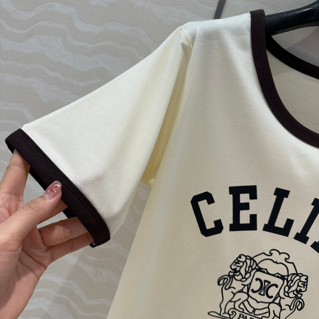 Celine 25 Arc de Triomphe Letter Short Sleeve T-shirt Off-white mix Black Cotton