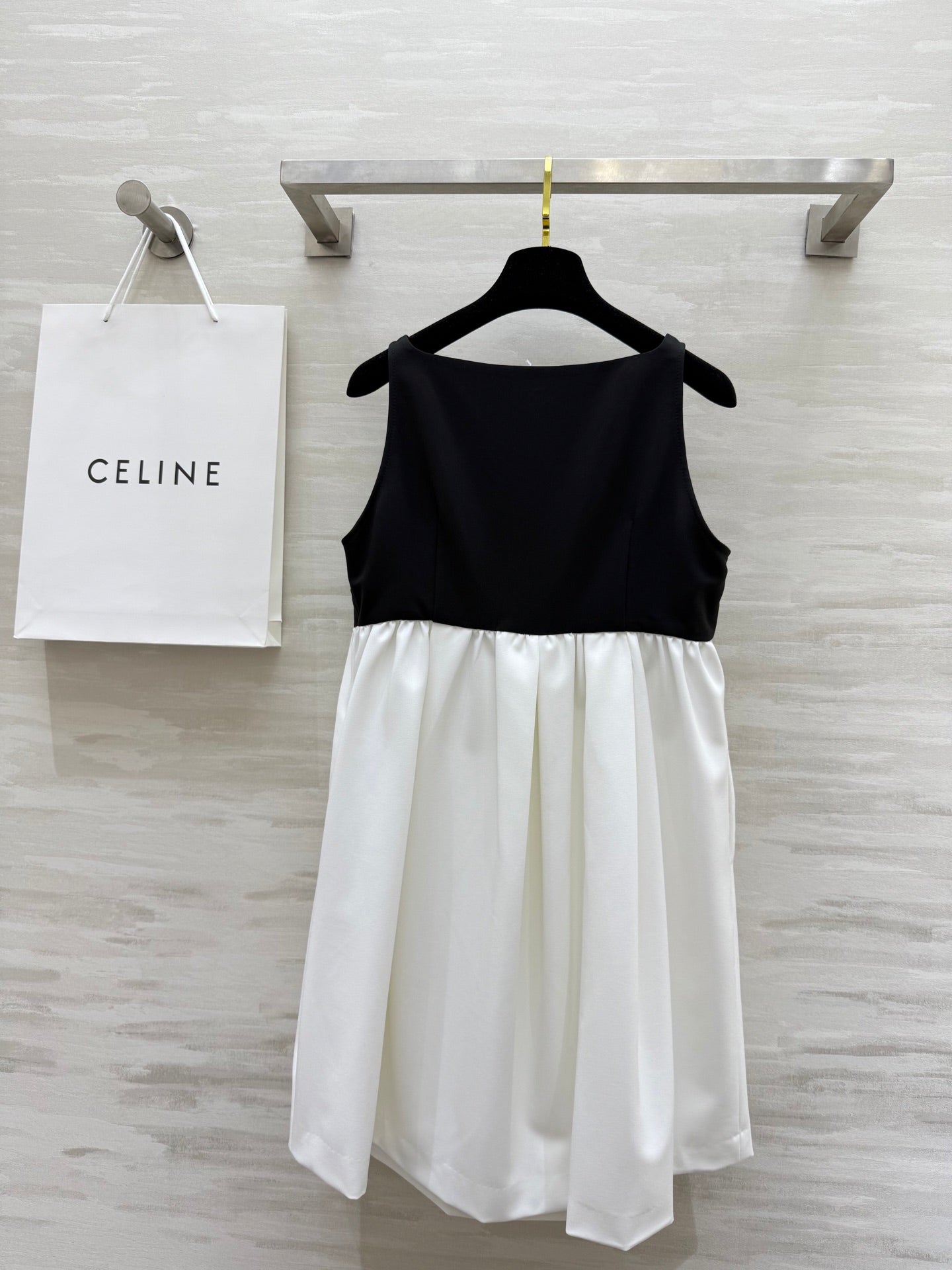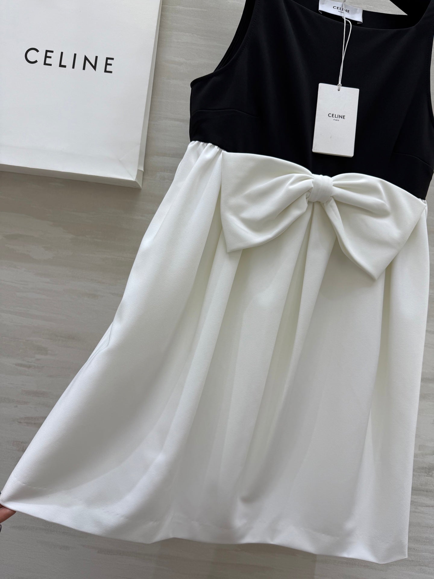 Celine 25 Bow Dress Black mix White Silk