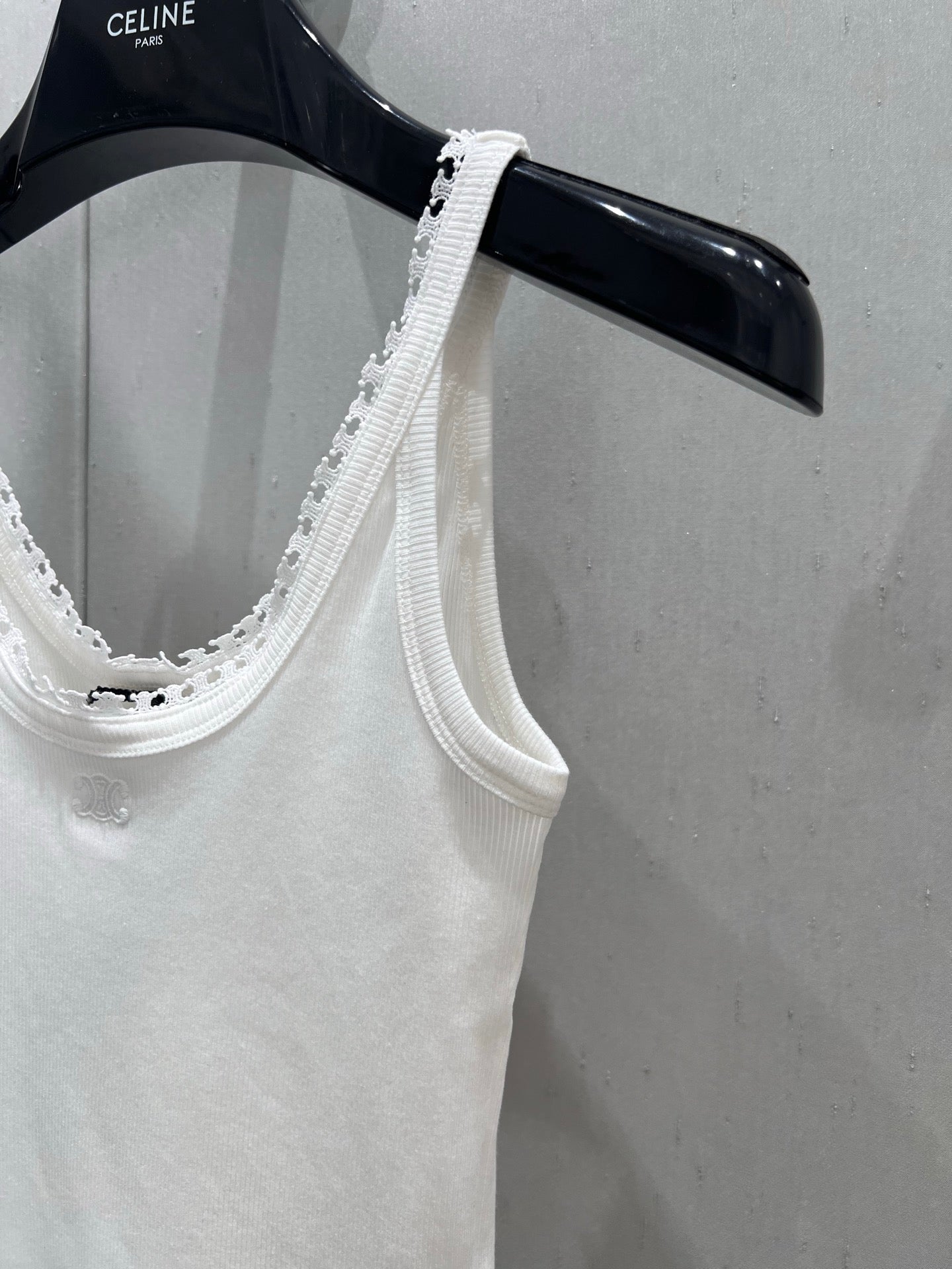 Celine 25 Lace Vest Camisole White Cotton Silk 215160