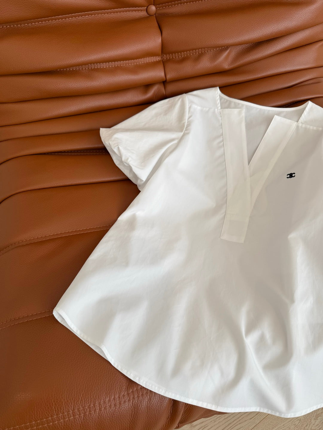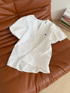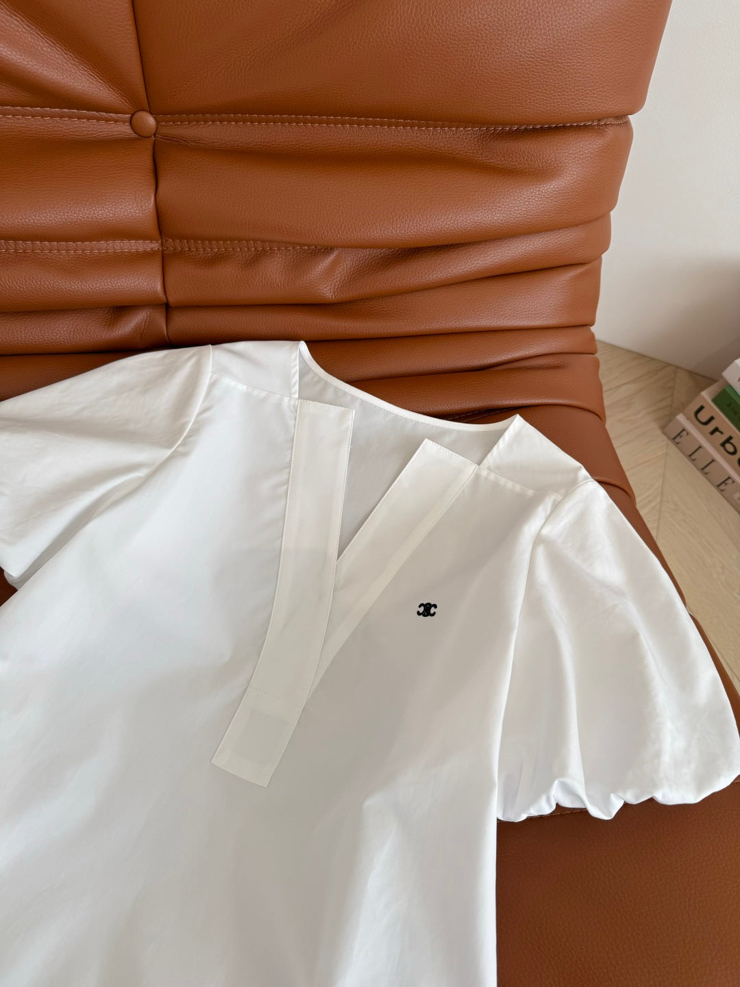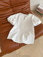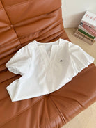 Celine 25 Logo Embroidered Puff Sleeve Shirt Whiet Cotton