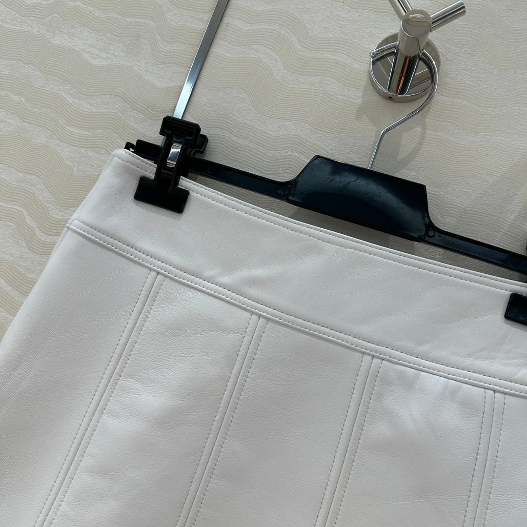 Celine Arc de Triomphe Metal Buckle skirt White Lambskin