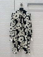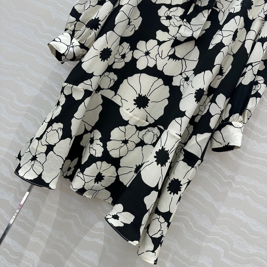Celine Flower Dress Black mix White Silk