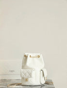 CC Drawstring Backpack White Lambskin