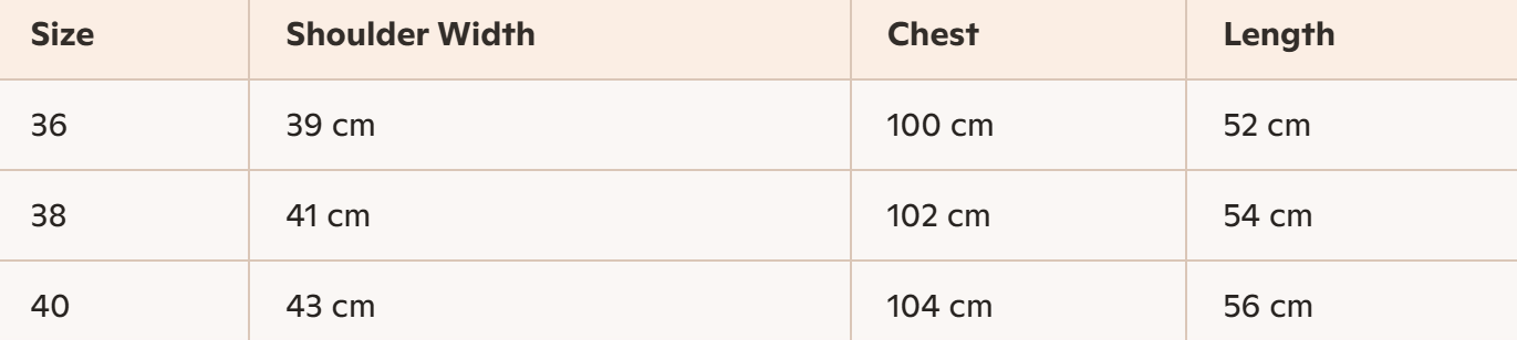 - Size : 36, 38, 40