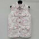 CC 25 Printed Denim Vest Jacket Pink White Cotton