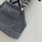 CC 25 Short Suspender Vest Dark Blue mix White Cotton