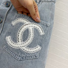 CC 25 Single-breasted Short Skirt Light Blue Denim Cotton
