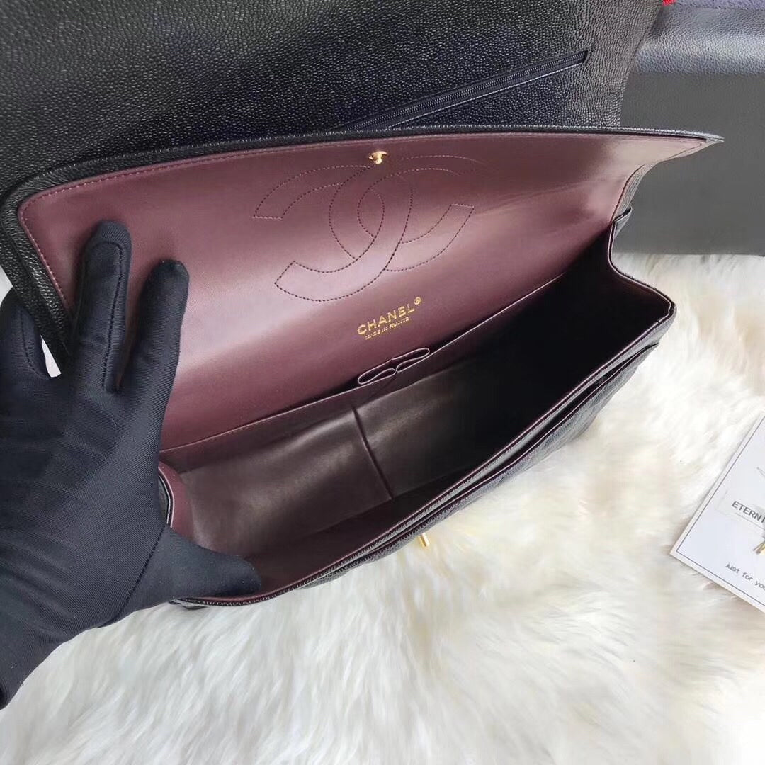 FLAP BAG 33CM BLACK CAVIAR GOLD HARDWARE