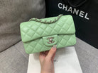 MINI RECTANGLE FLAP BAG 20CM LIME LAMBSKIN SILVER HARDWARE