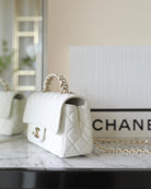 MINI RECTANGLE FLAP BAG TOP HANDLE 20CM WHITE LAMBSKIN SILVER HARDWARE