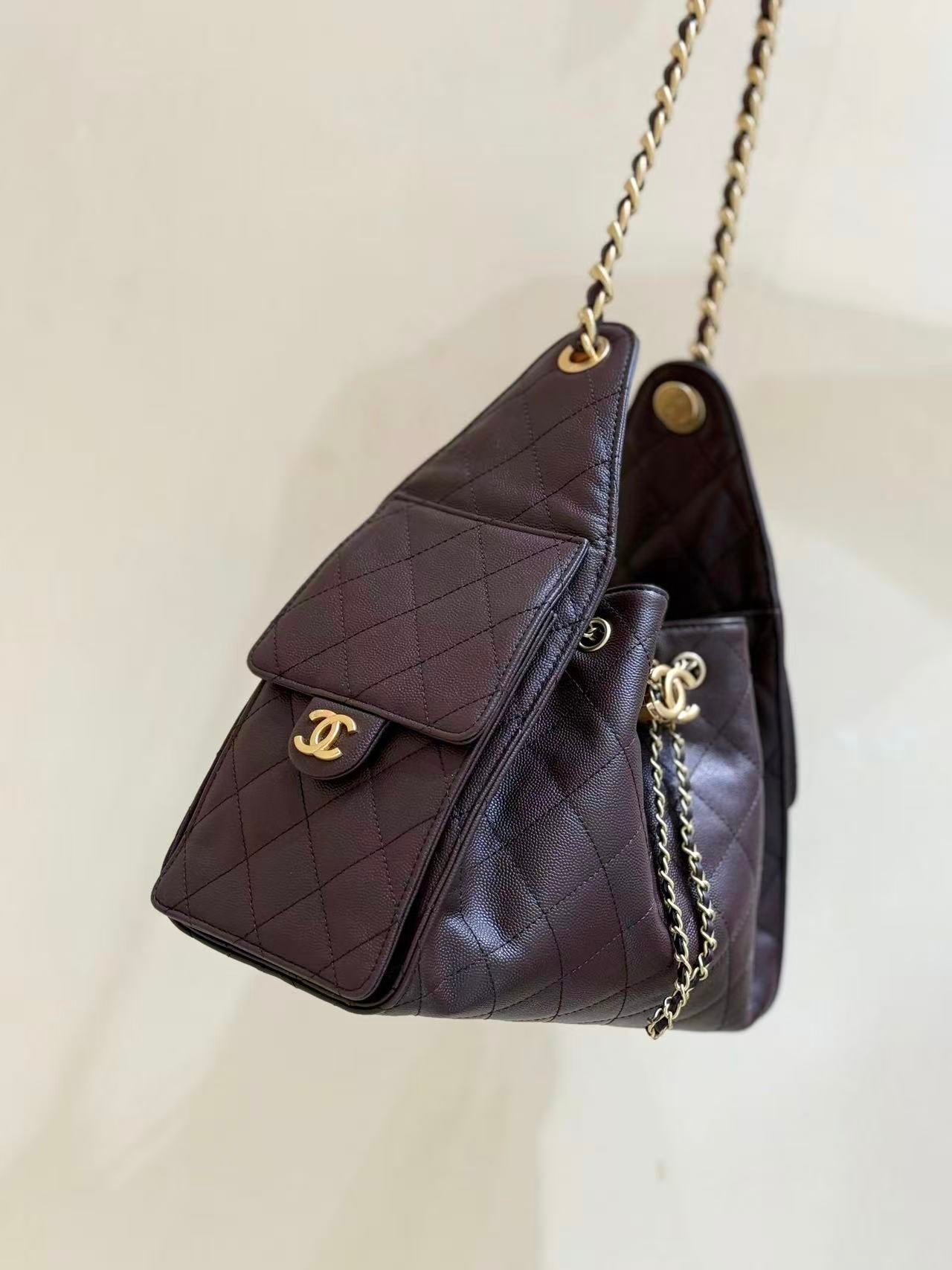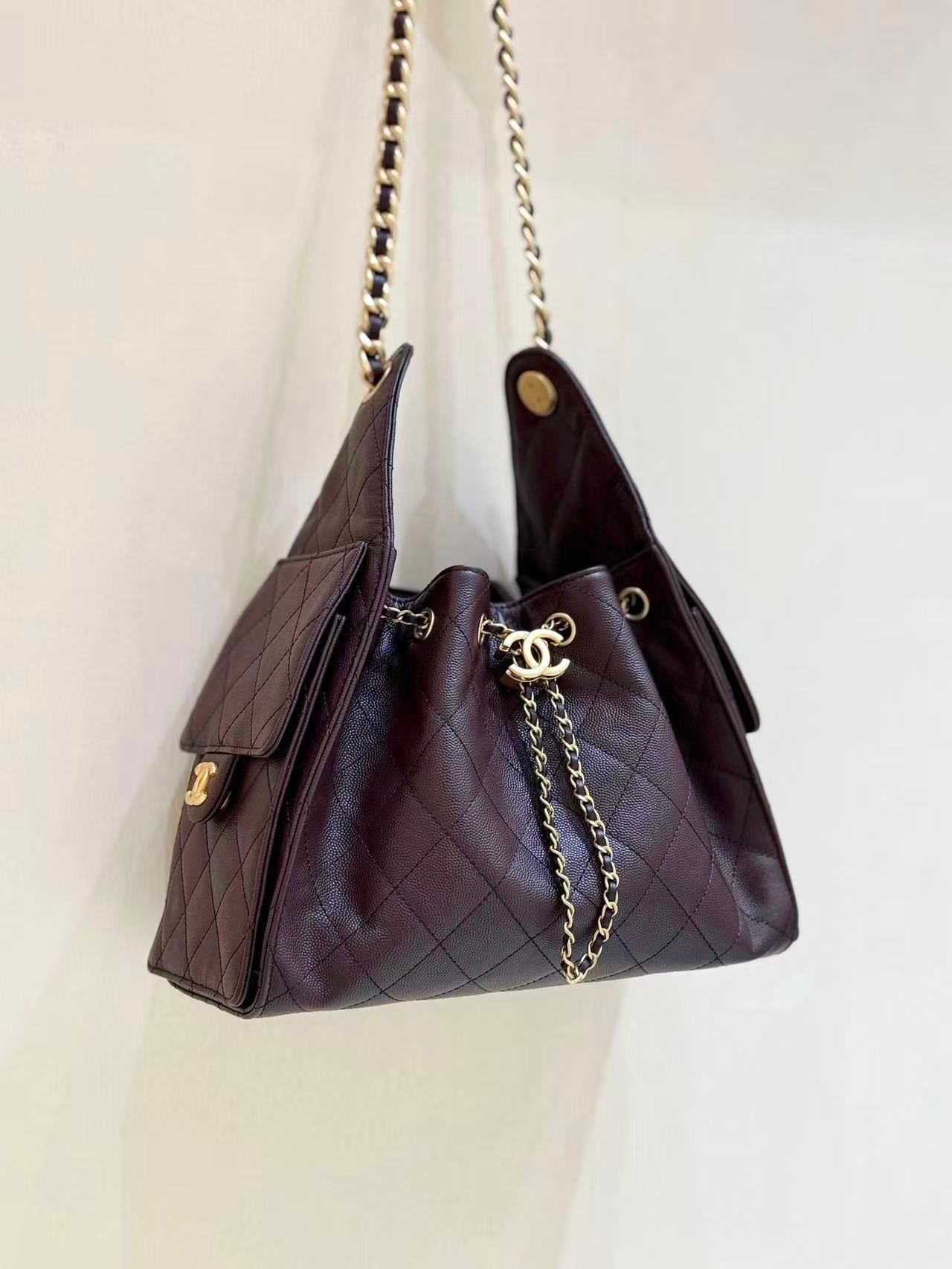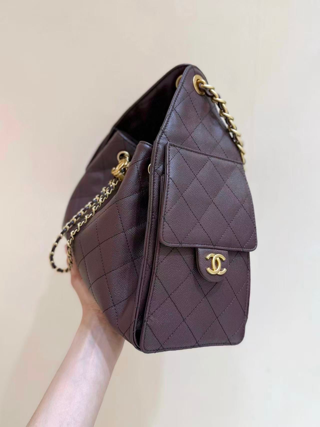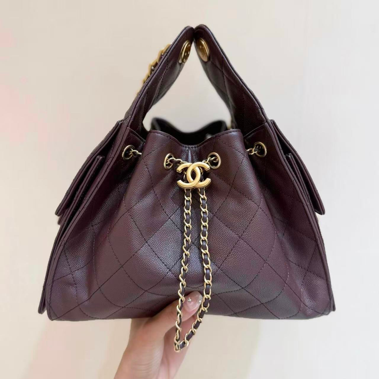 CC 25s Hobo Bag Dark Burgundy Gold Grained Calfskin