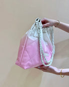 cc22 hobo bag pink white lambskin silver hardware