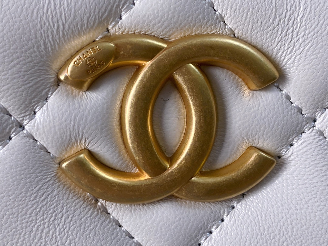 CC 2Way Chain Shoulder Tote Bag White Leather