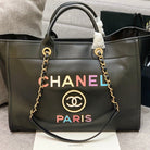 CC DEAUVILLE TOTE BAG 39CM BLACK CALFSKIN MULTICOLOR LOGO