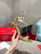 CL Spiked Strap Sandals 100mm Gold Leather 346013