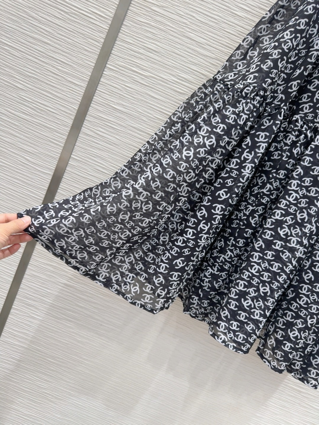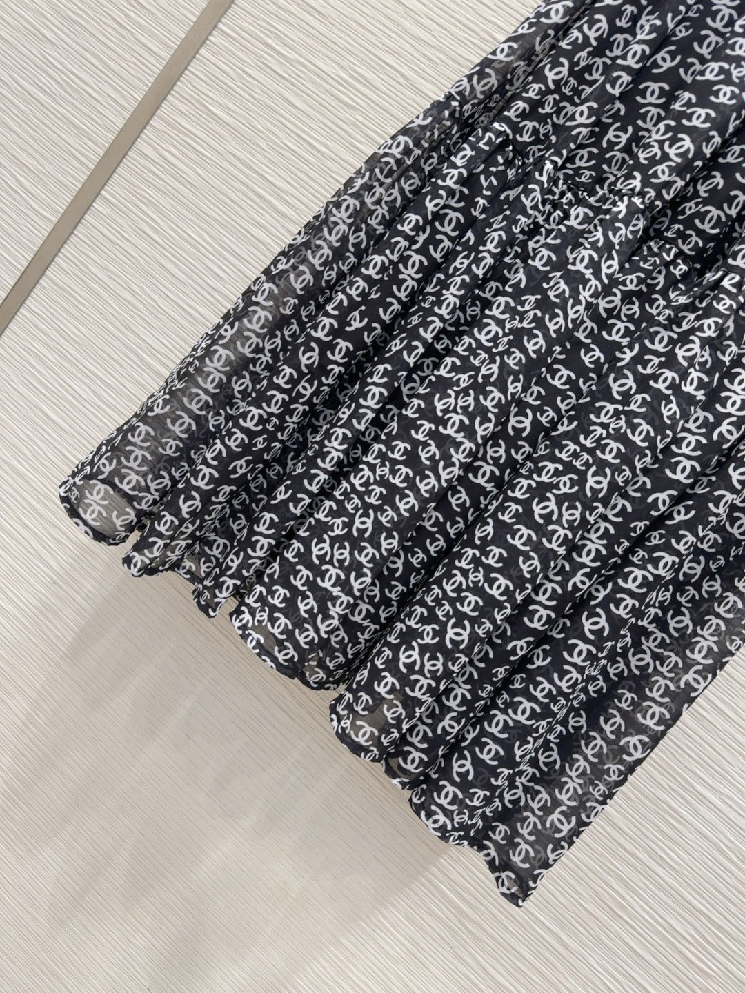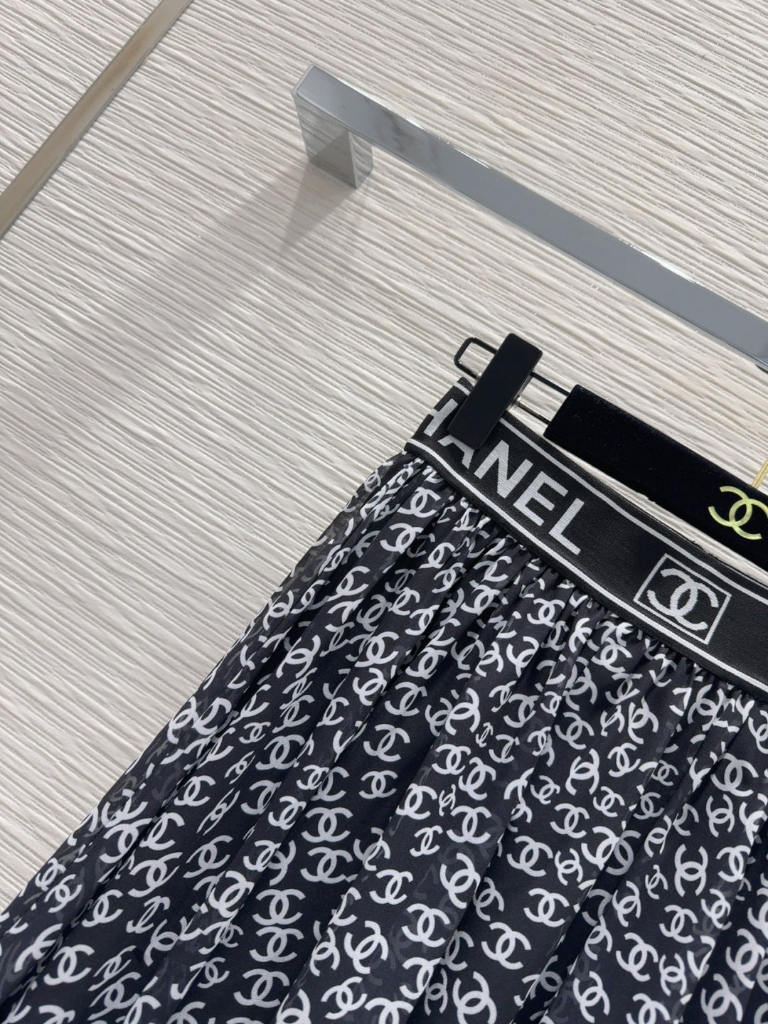 CC 2025 Double C Printed Skirt Black White Polyester Fiber