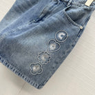 CC 25 Embroidered Short Skirt Blue Denim Cotton