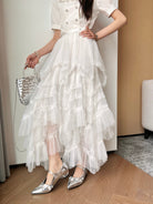 CC 25 Mesh Long Skirt White Polyester Fiber