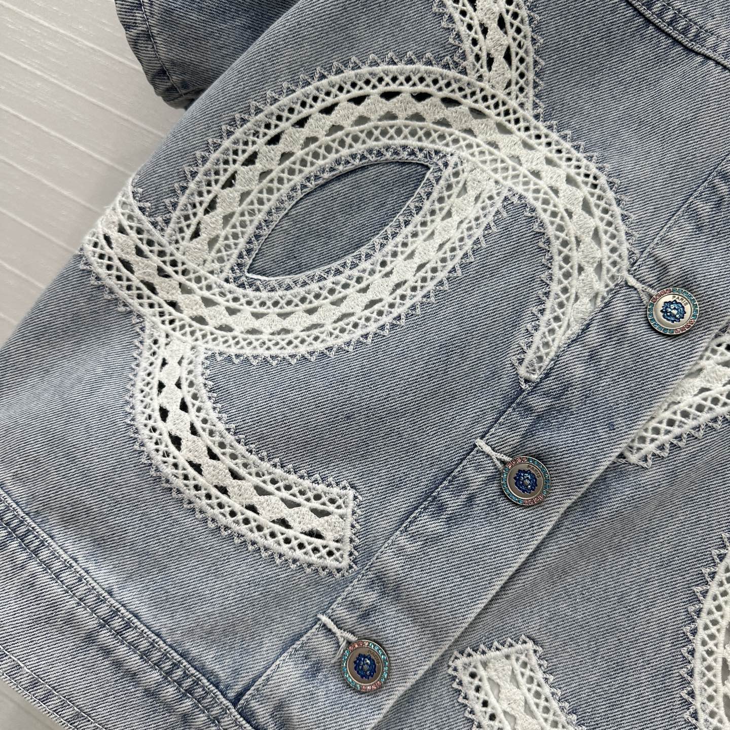 CC 25 Round Neck Short-sleeved Jacket Light Blue Denim Cotton