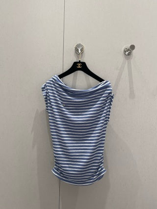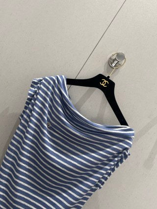 CC 25 Striped One-shoulder Short-sleeved T-shirt Cotton