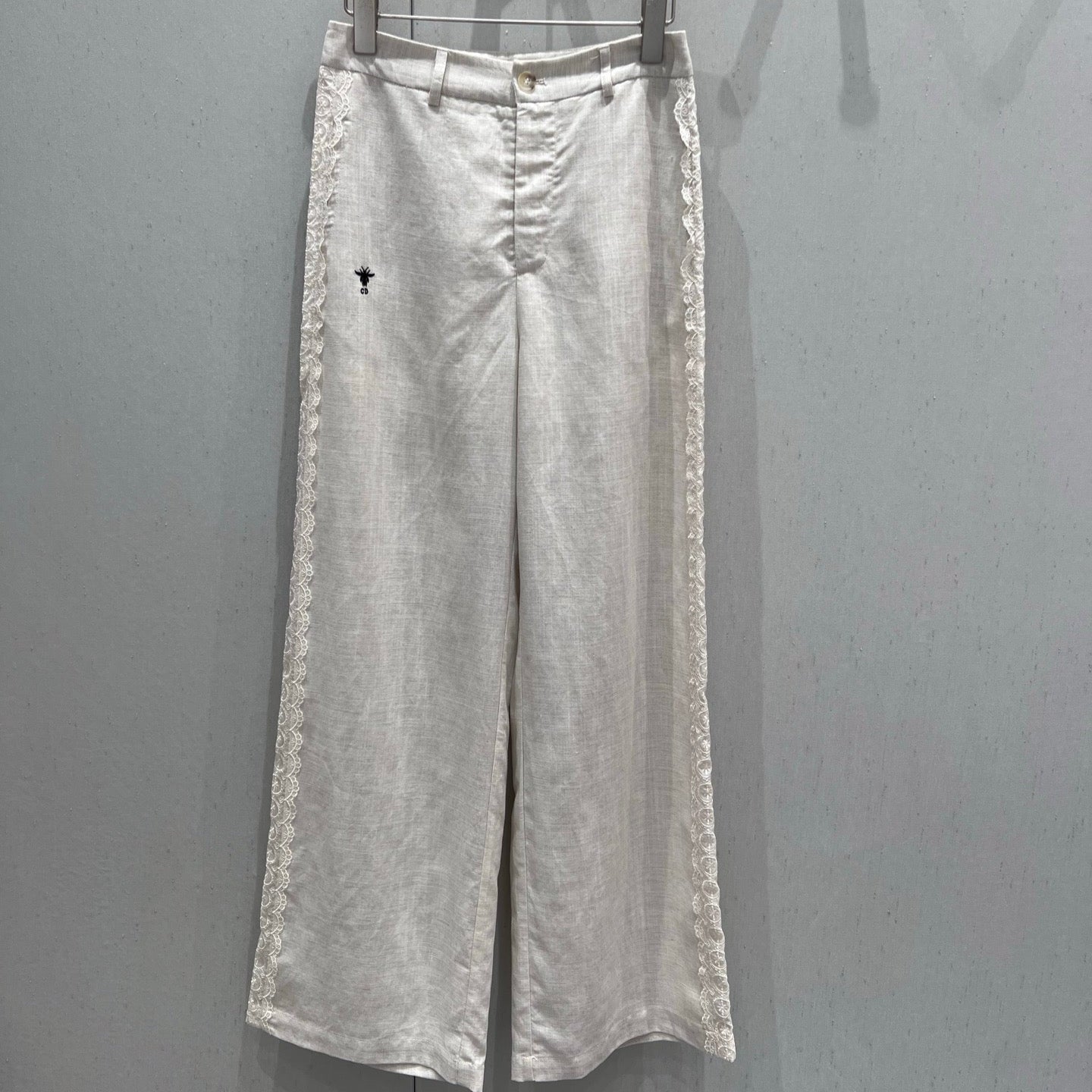 CD 2025 Straight Trouser White Linen Tencel 216454