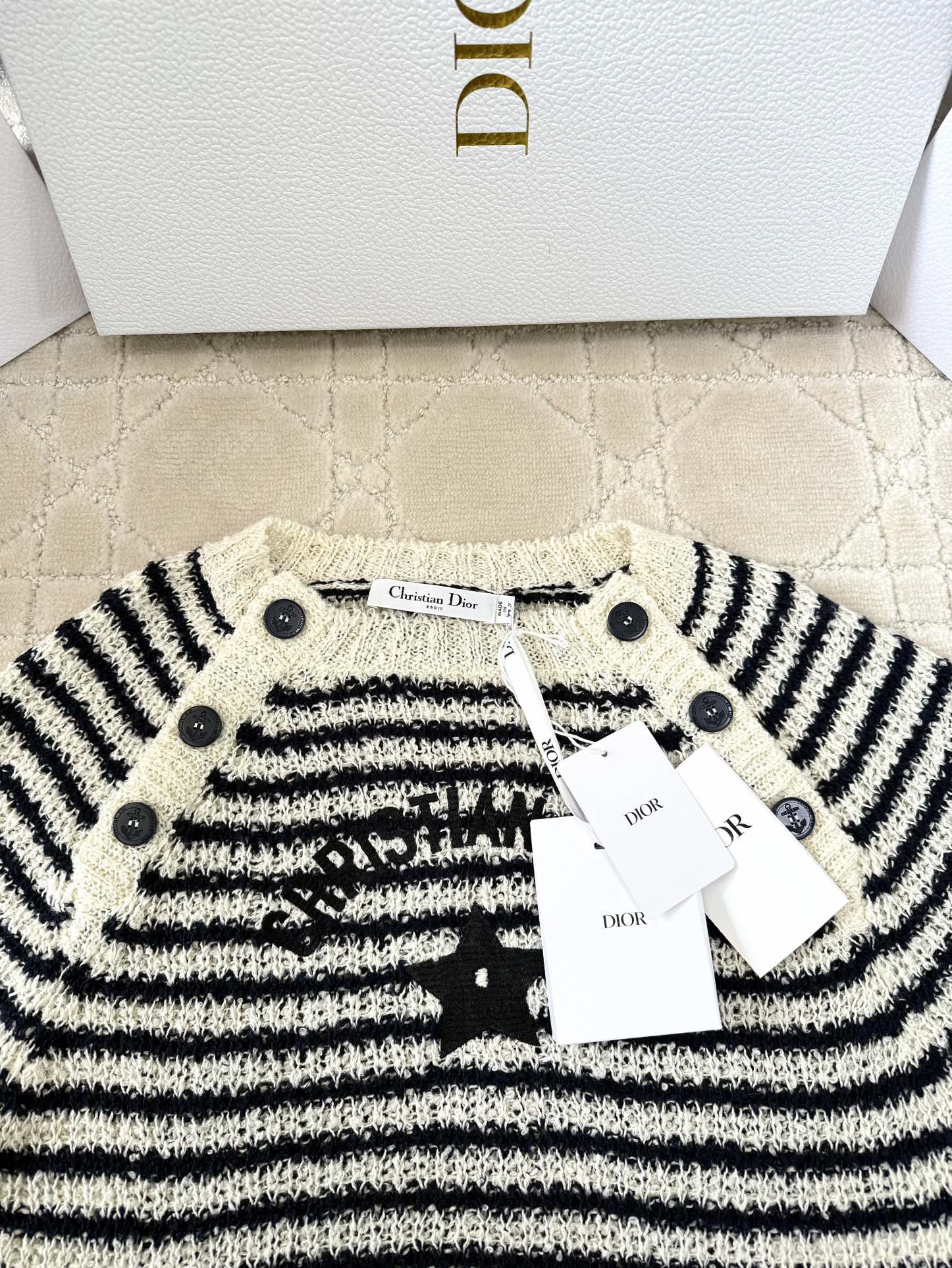 CD 2025 Striped Knitted Short Sleeves Beige mix Black Cotton