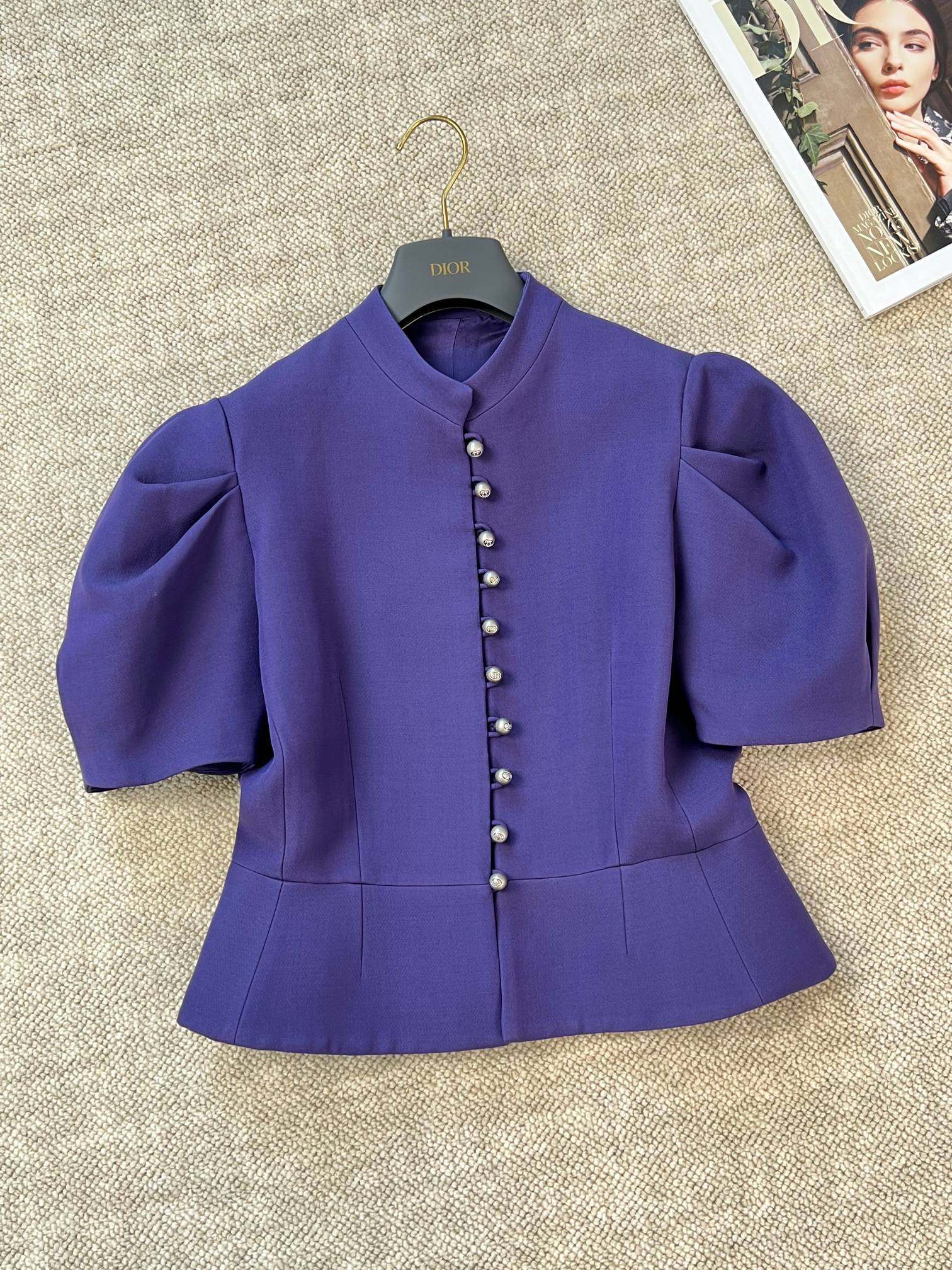 CD 25 Fitted Short-sleeved Jacket Purple Wool Silk
