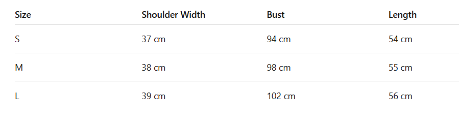 - Size : S,M,L