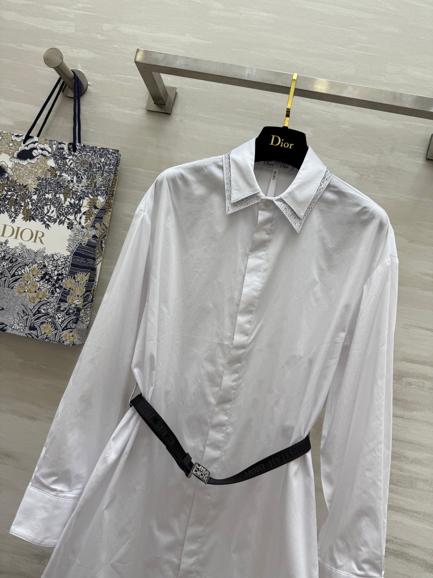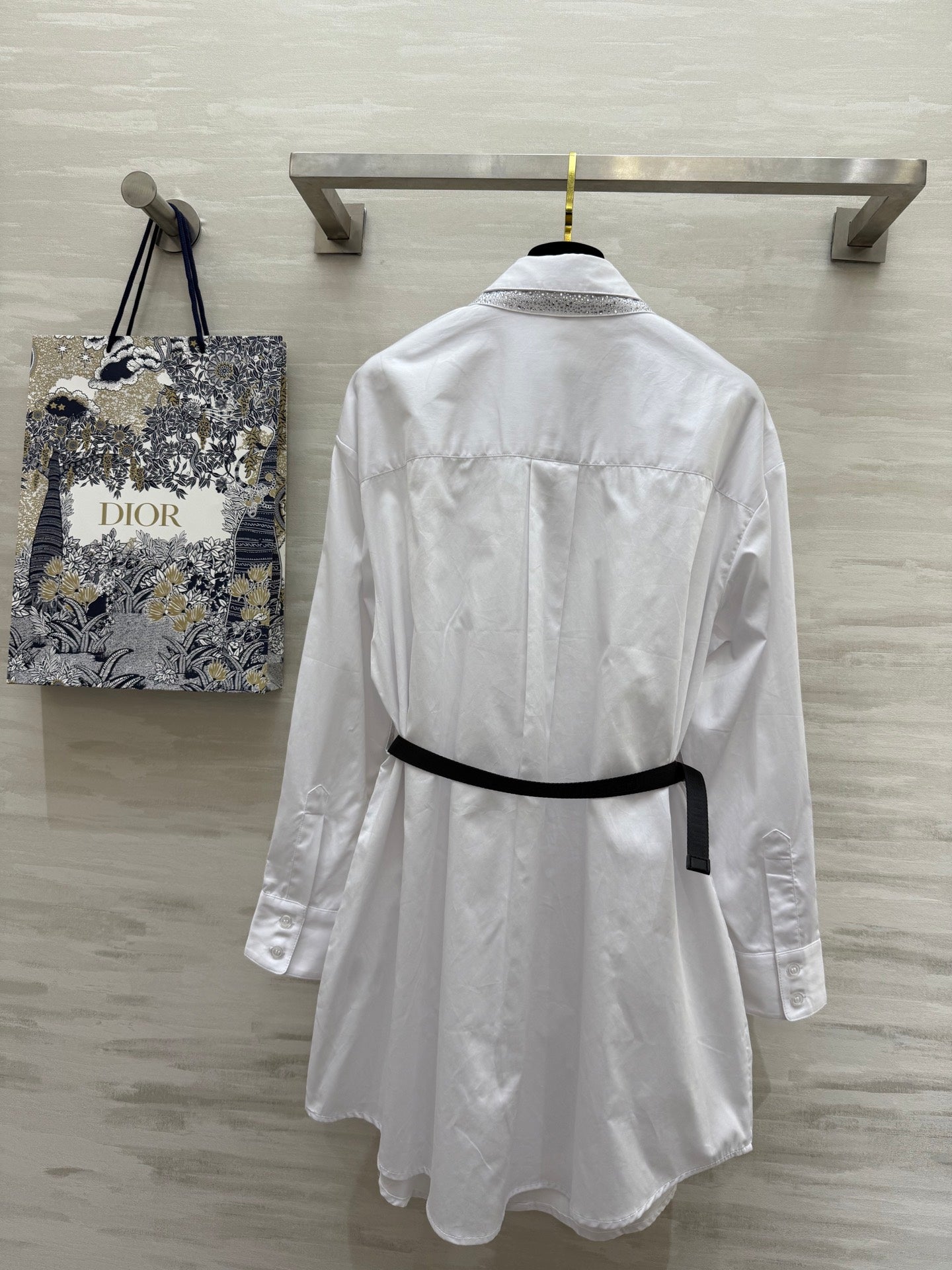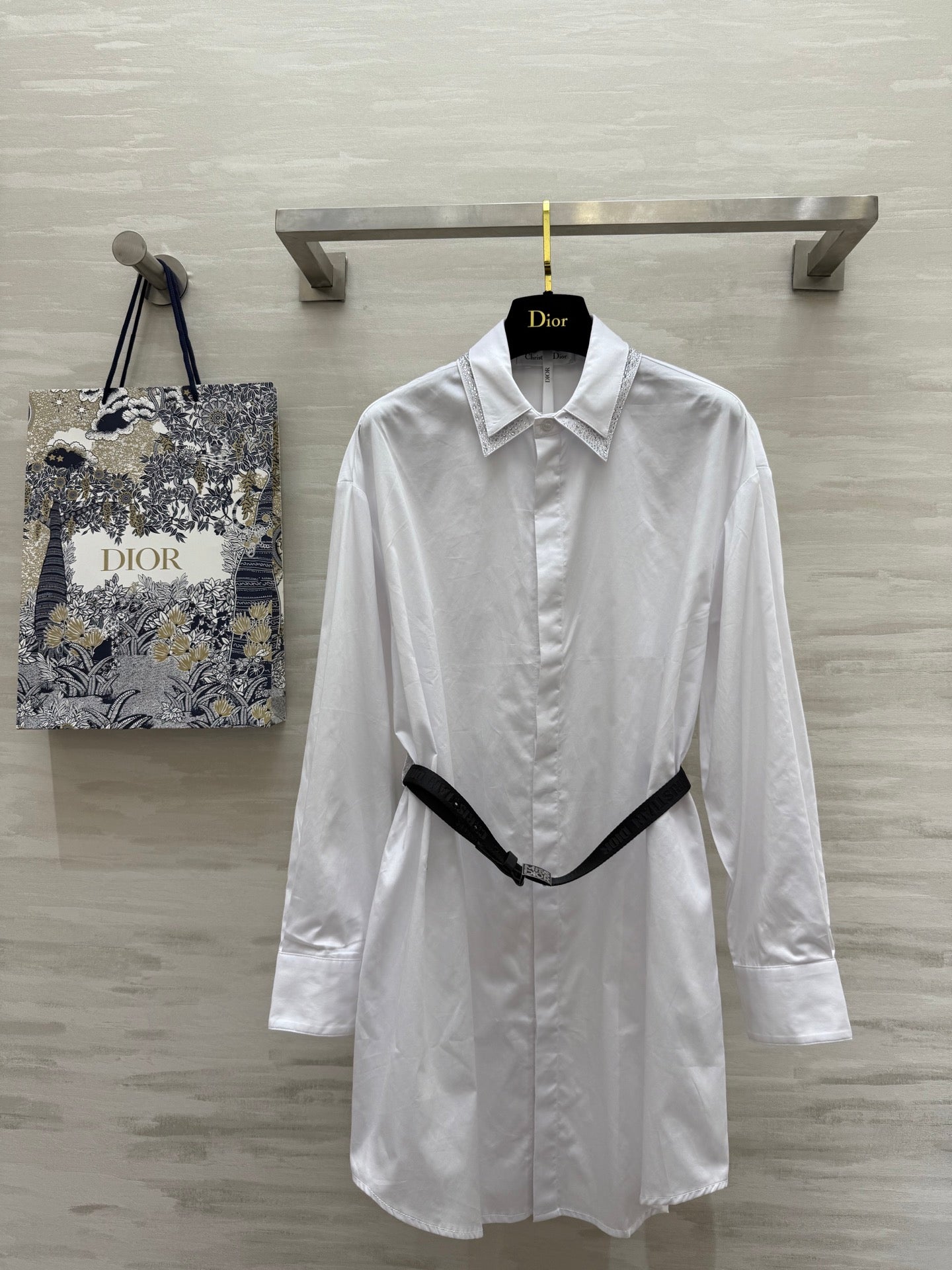 CD Belt Shirt Dress White cotton