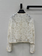 Celine 25 Lace Embroidered Cardigan Jacket White polyester