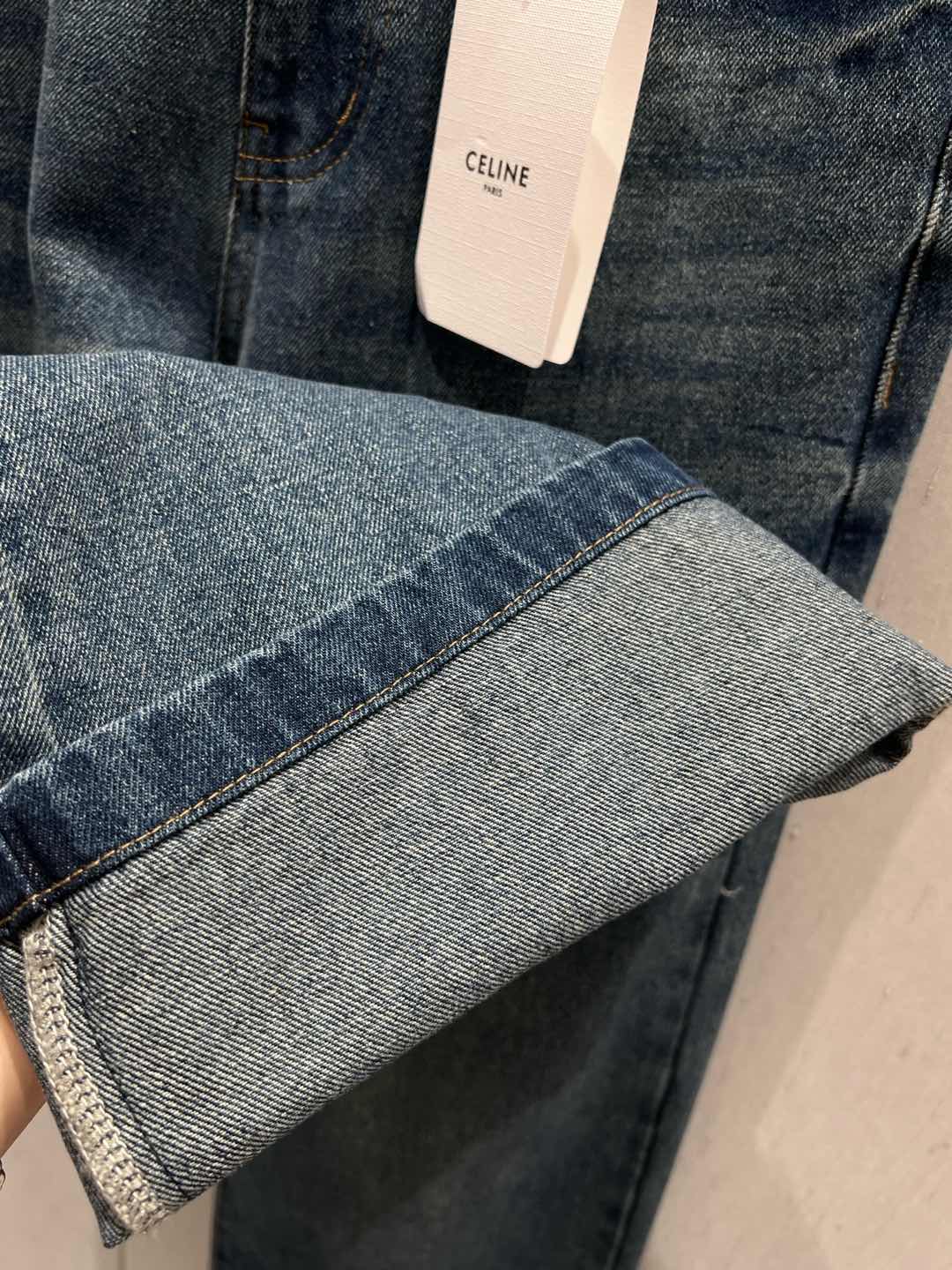 Celine Back Pocket Embroidery Cover Straight Jeans Blue Cotton 209716
