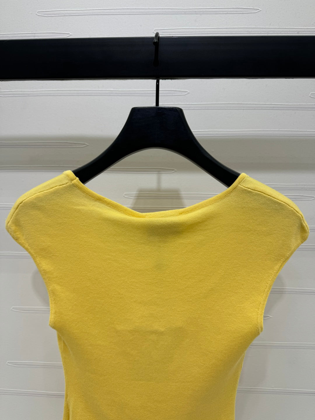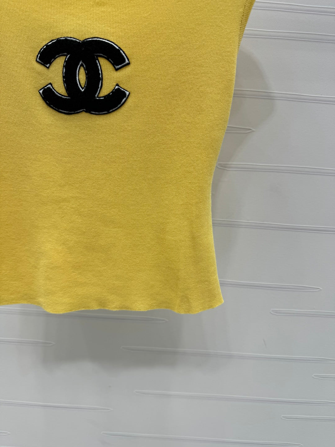 Chanel 25 Yellow Tank Top Square Neck Knitted