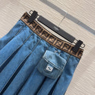 Fendi 2025 Pleated Denim Skirt Blue Cotton