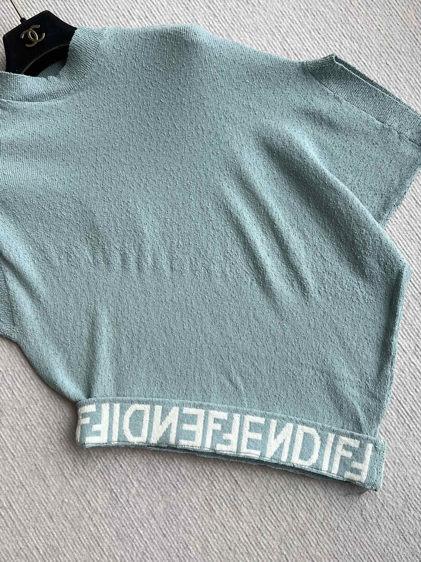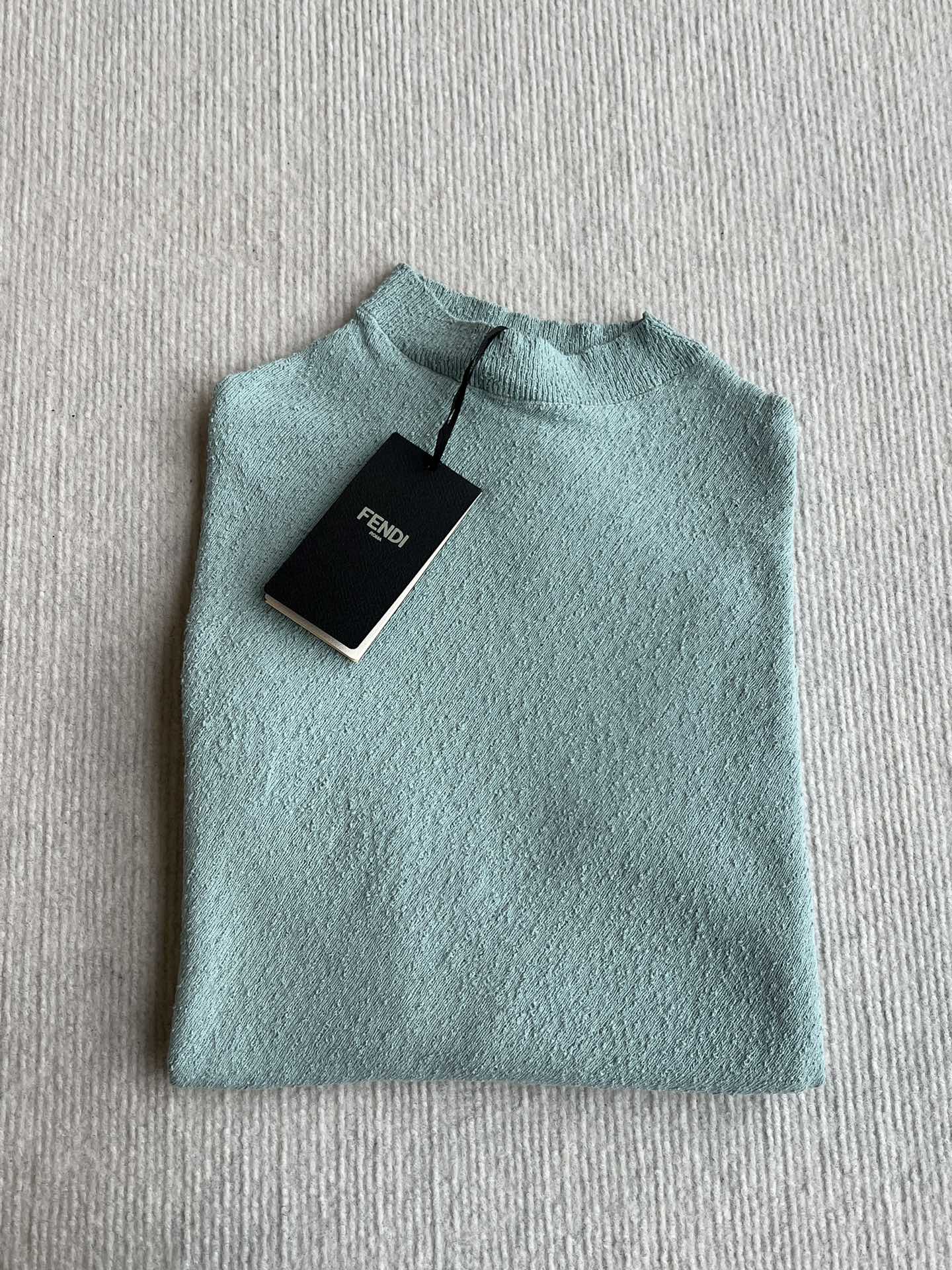 Fendi 25 Asymmetric Hem Cape-sleeved Crewneck Jumper Ice Blue Viscose