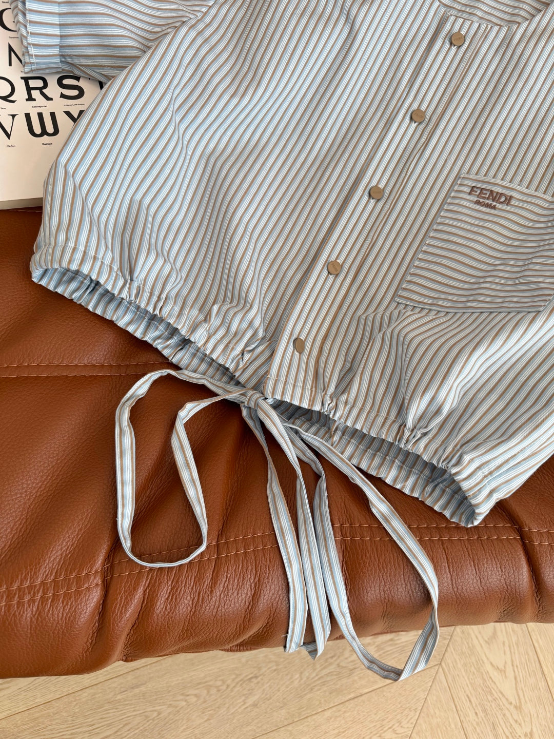 Fendi 25 Letter Logo Embroidered Striped Suit Blue Cotton