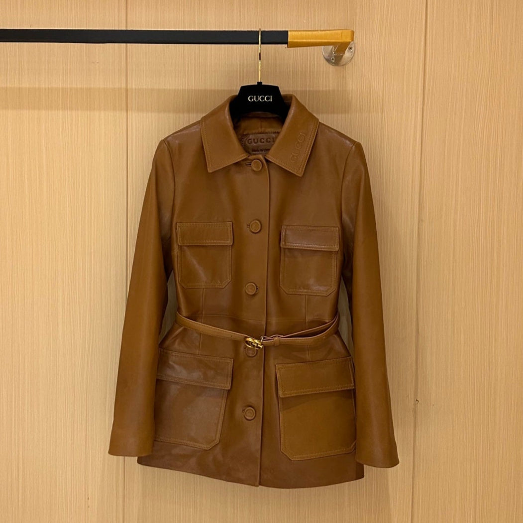 Gucci Jacket Brown Leather 276970