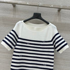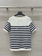 LV 25 Button Rope Short-Sleeved Shirt White Blue Wool