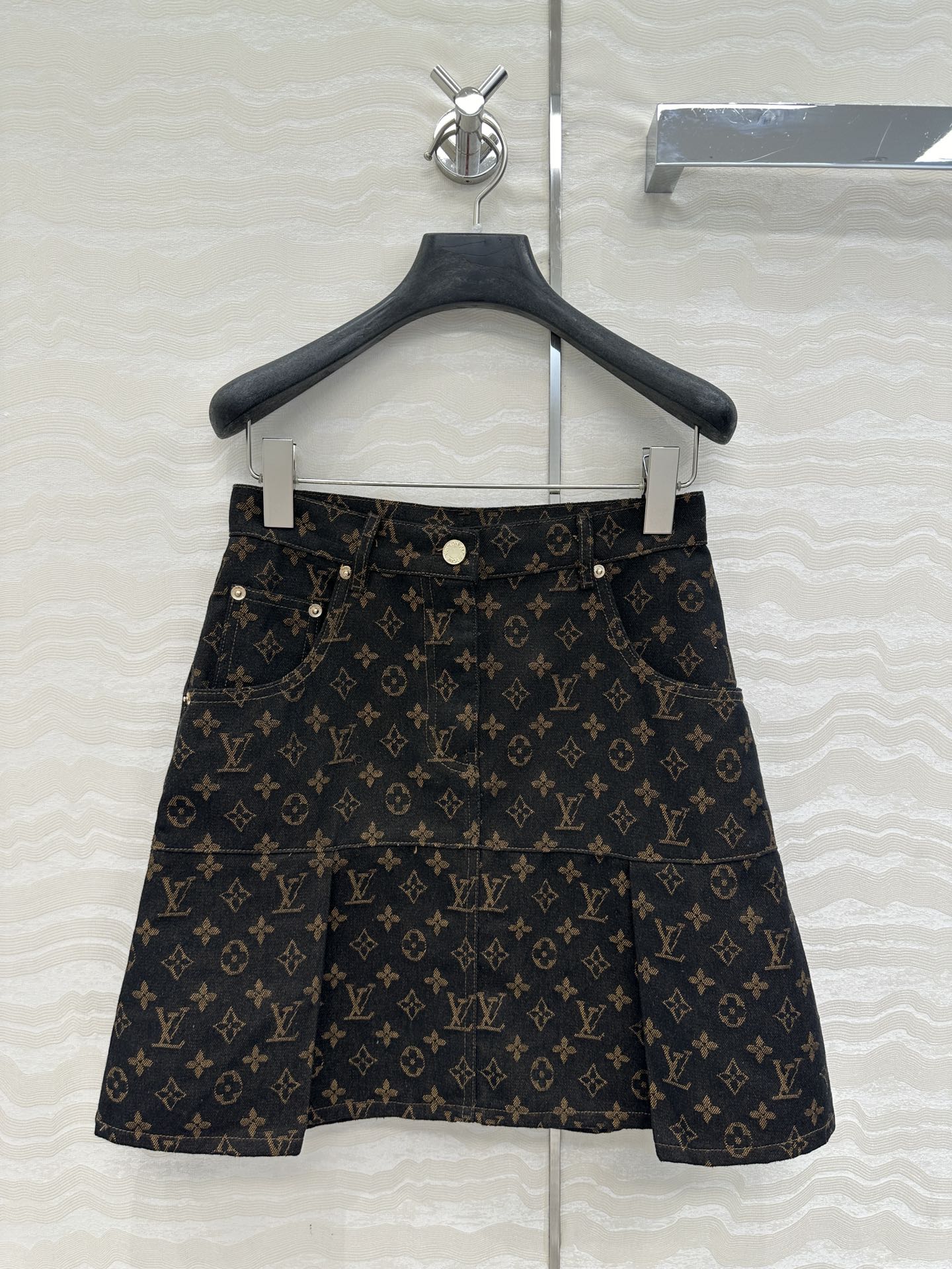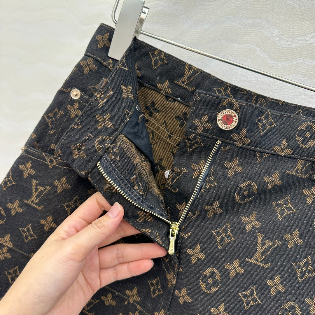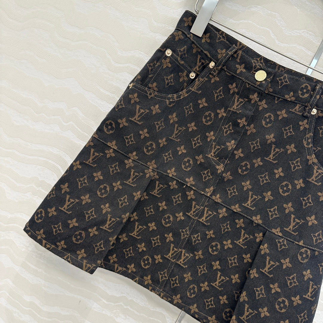LV 25 Classic Logo Denim Skirt Black Cotton