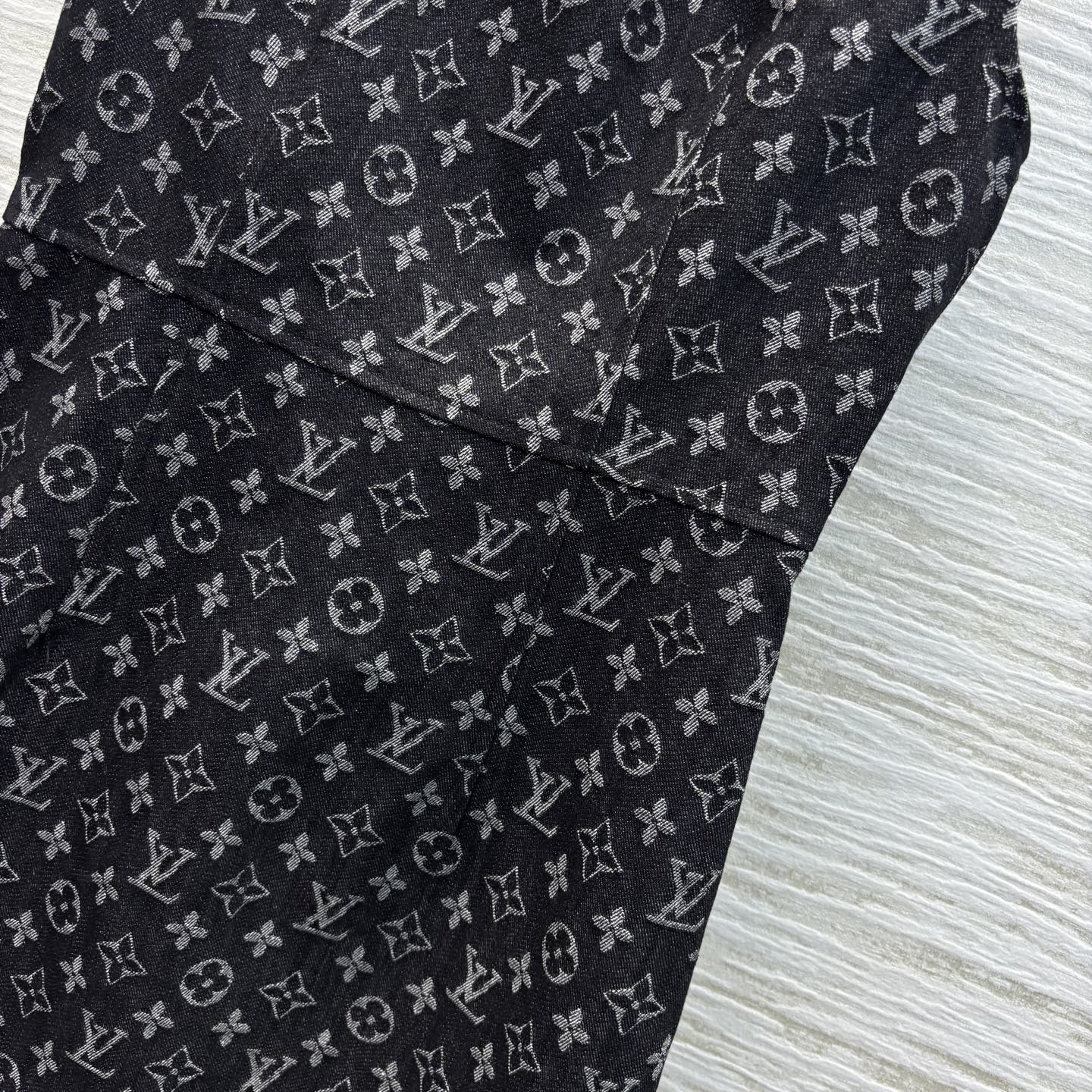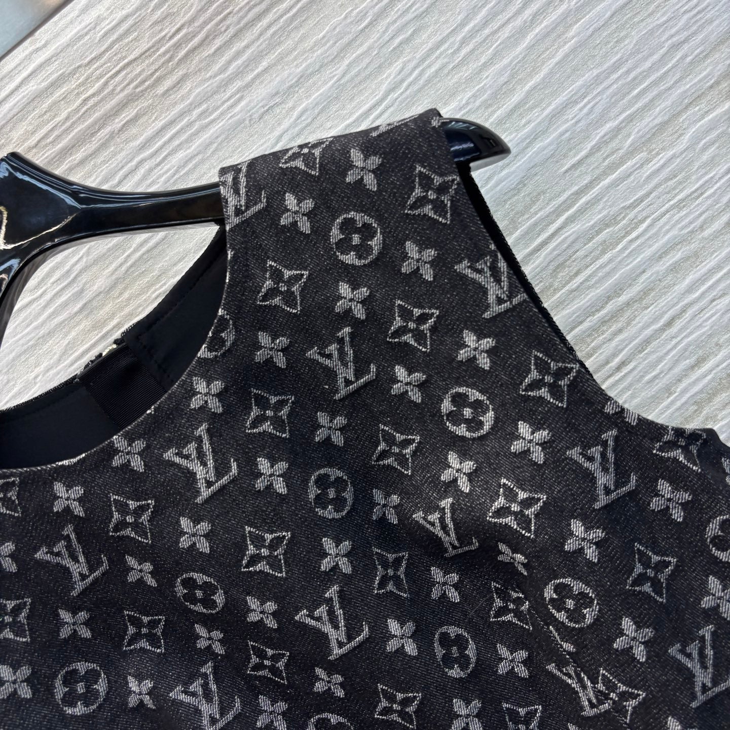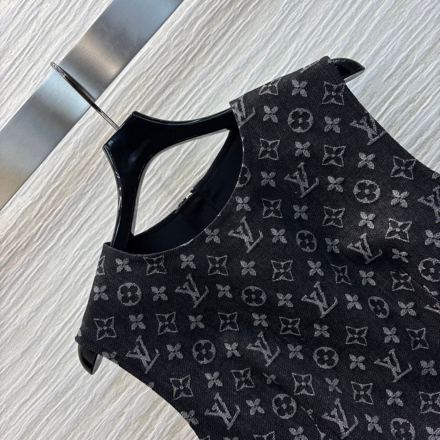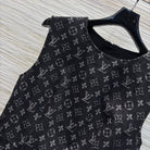 LV 25 Logo Jacquard Sleeveless Denim Straight Dress Black Cotton