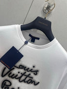 LV 25 Neck Short-Sleeved T-shirt Black White Cotton 213651