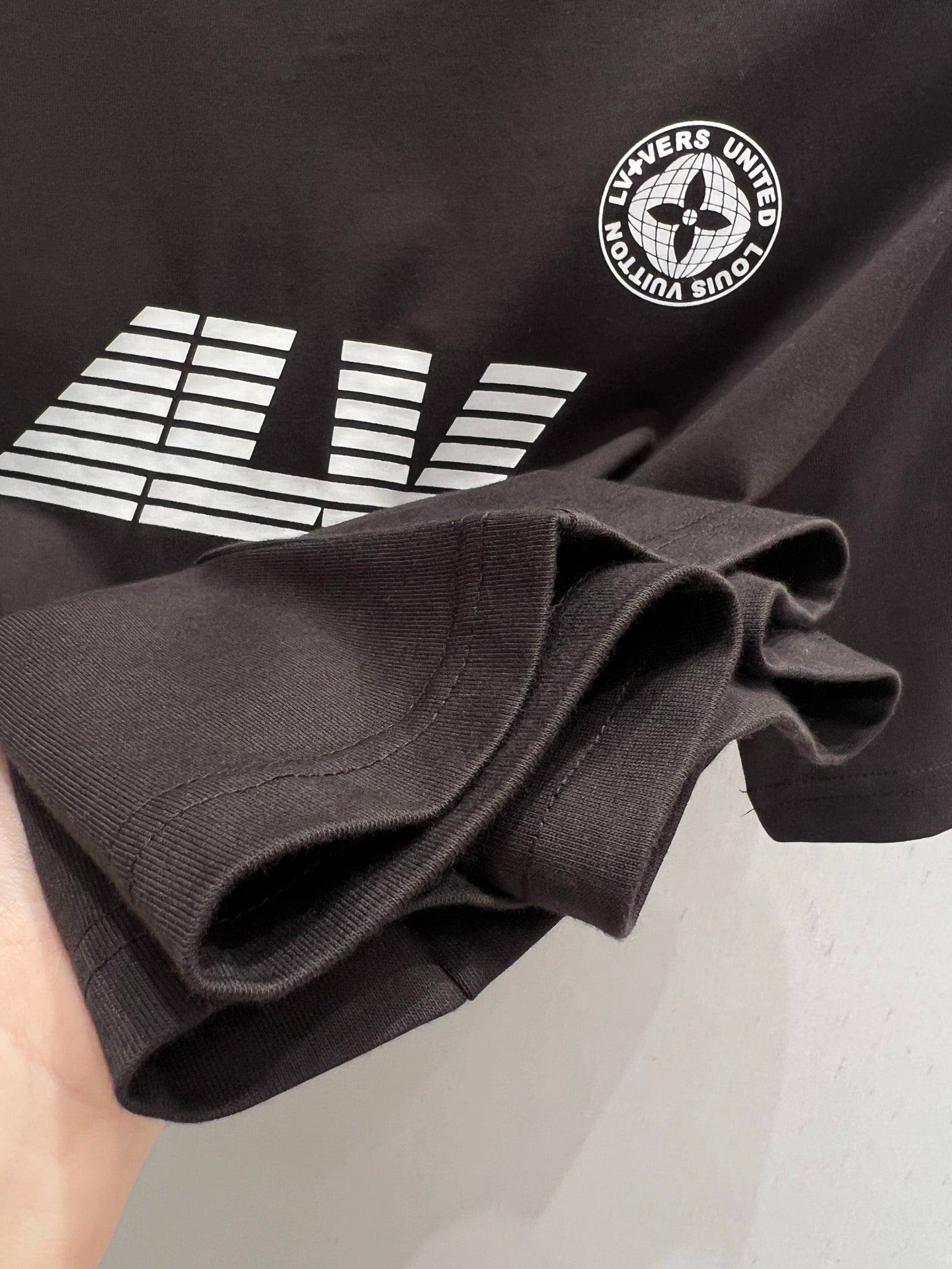 LV 25 Neck Short-Sleeved T-shirt Brown Cotton 212817