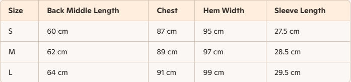 - Size : S, M, L