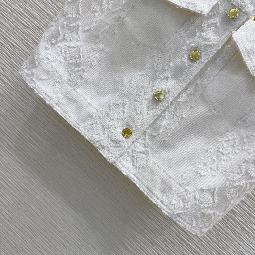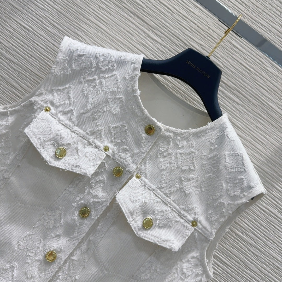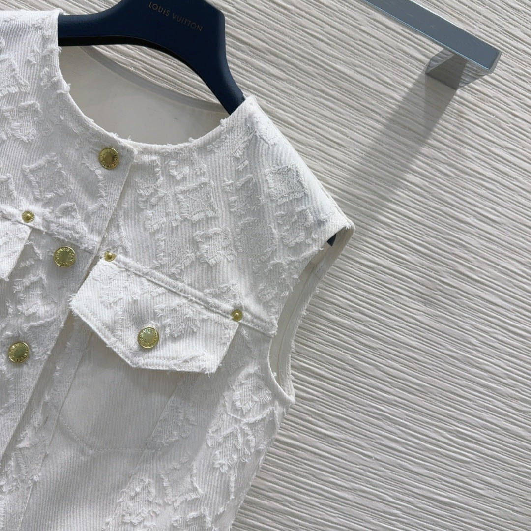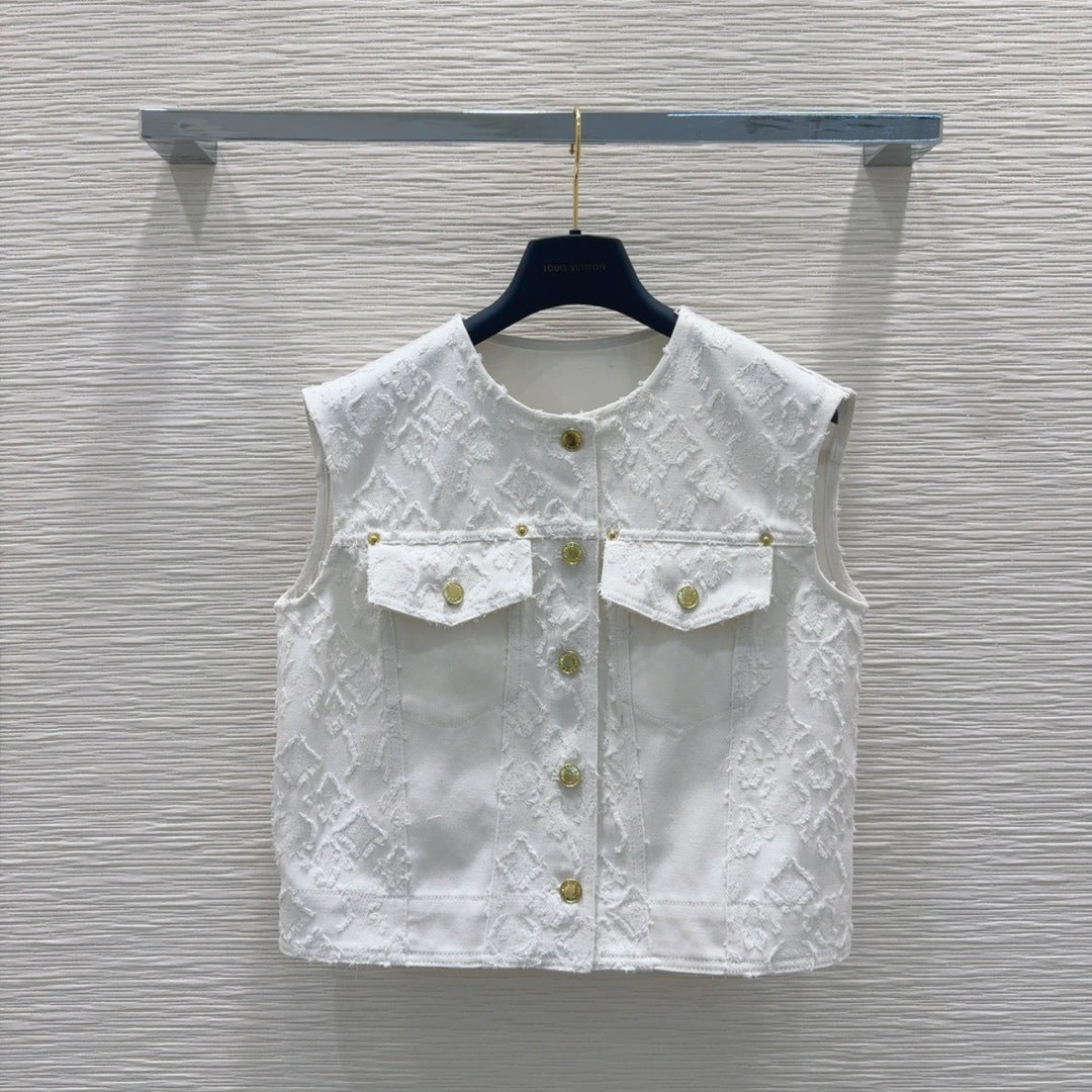 LV 25S Monograw Jacquard Fabric Vest Jacket White Cotton
