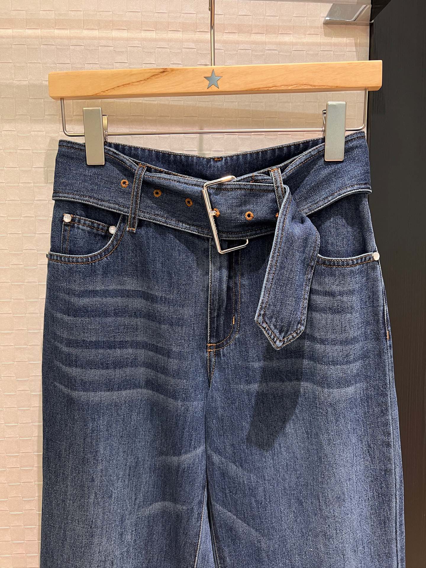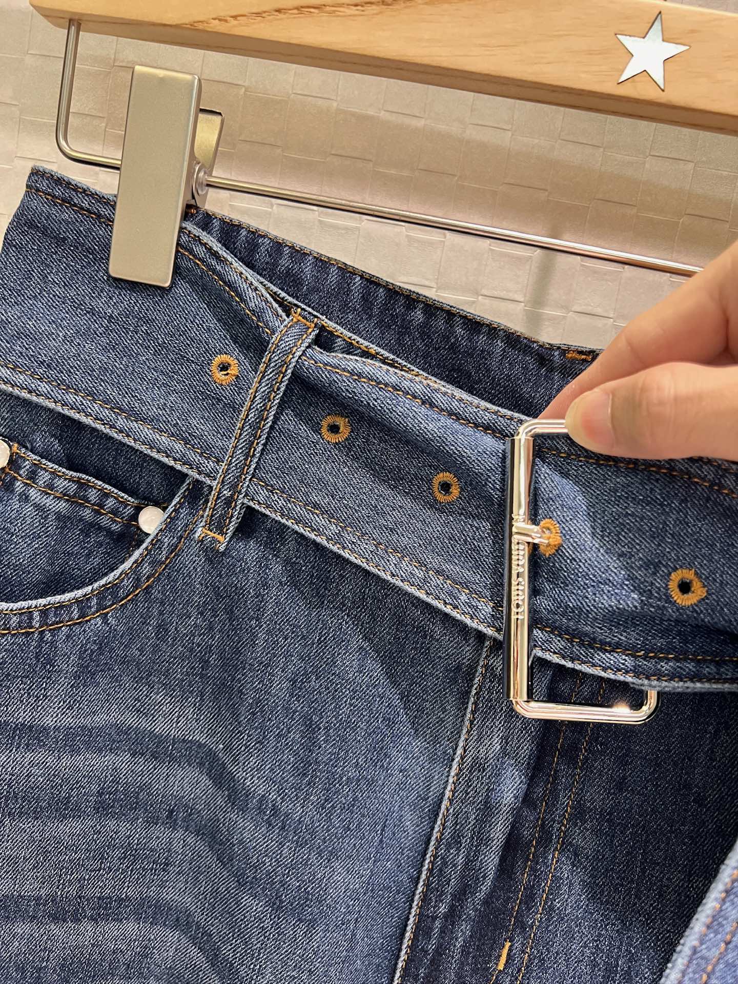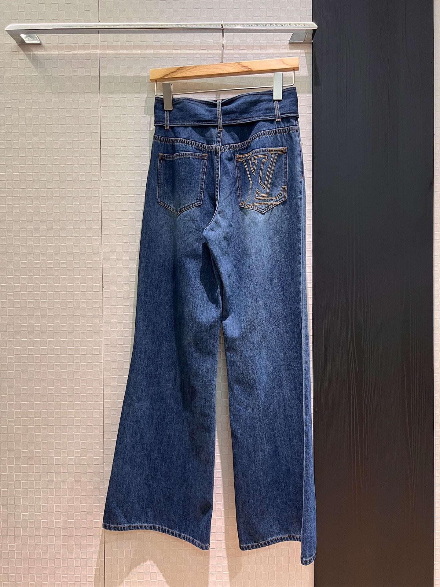 LV Large Belt Decorated Jeans Blue Cotton